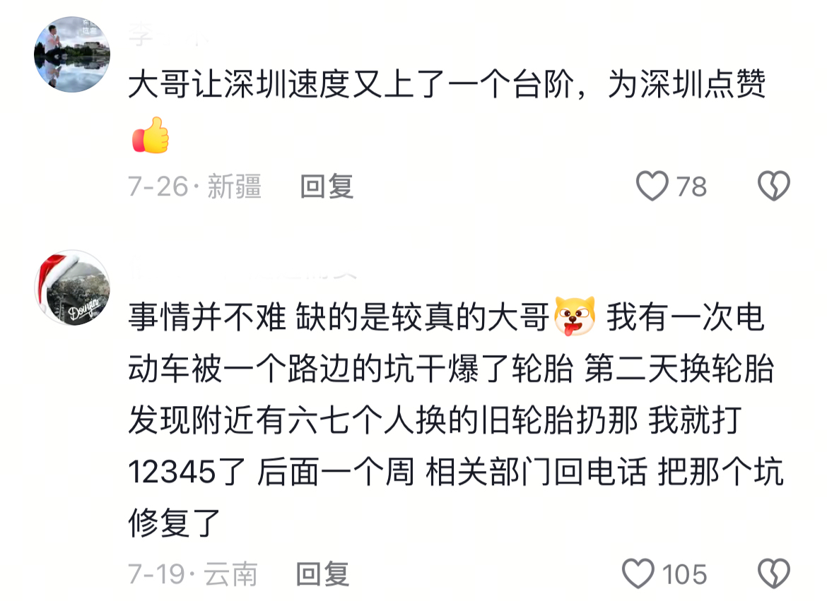 令他不测的是,只是过了两个月,他的视频就获取了“深圳交通”官方账号的点赞。这让他颇为骇怪:“蓝本官方一直有东谈主在值守,及时摄取市民的主见。”