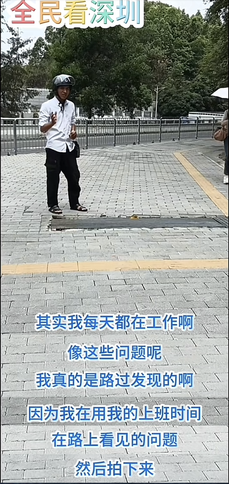 不管是随时可能陨落的“危墙”、臆测打算不对理的陡坡,仍是位置失当的灯杆口号、庇荫谈路的绿植,抑或是存在安全隐患的井盖……这位被称为“卷尺哥”的网友一朝发布视频,深圳联系部门实在老是第一本事响应,飞速鼓动问题贬责。